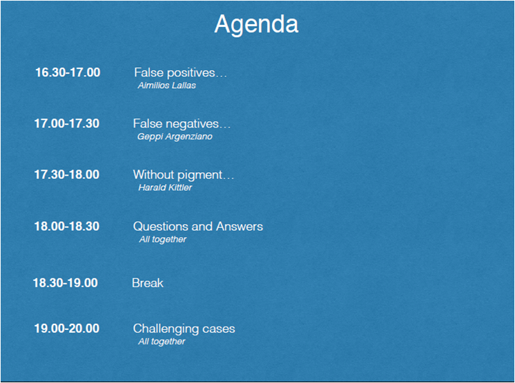 Στα πλαίσια της 5ης Επιστημονικής Εκδήλωσης της ΕΛ.Ε.ΔΕ. με θέμα: «Η ΔΕΡΜΑΤΟΣΚΟΠΗΣΗ ΣΕ ΟΛΕΣ ΤΙΣ ΗΛΙΚΙΕΣ ΜΕΣΑ ΑΠΟ ΚΑΘΗΜΕΡΙΝΑ ΚΛΙΝΙΚΑ ΣΕΝΑΡΙΑ» στο ξενoδοχείο Divani Caravel στην Αθήνα, θα πραγματοποιηθεί την Παρασκευή 8 Δεκεμβρίου το advanced course “traps and tips on dermoscopy”. Για το advanced course θα χορηγηθεί ξεχωριστό πιστοποιητικό παρακολούθησης.